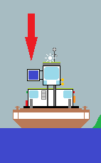 V tomhle případě se musíme strefit s lodí mezi bílé trojúhelníky. Plavba jinudy (od červených polí na obě strany) je zakázaná.